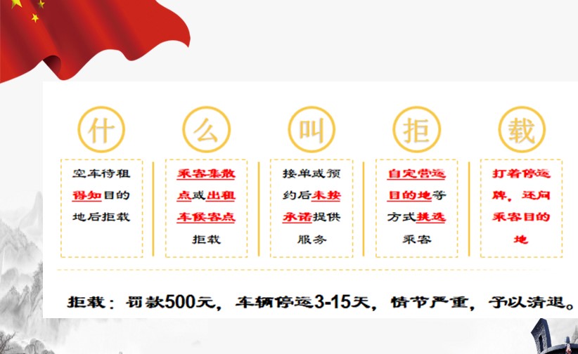 (四)违规拒载,或使用营运方向示意牌,或不遵守站点管理规定,在站点揽客、拉客。