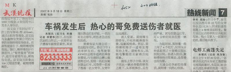 热心的哥免费送伤者就医(4052号车黄勇俊)