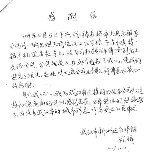 3月8日凌晨1点,大通301分公司3337号出租车司机李洪强师傅,载华工科技大两名女留...