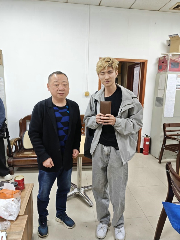 另一边,失主邹先生直到中午醒来才发现钱包遗失,他自感寻回希望渺茫,但仍抱着一线希望尝试联系。令他惊喜的是,通过支付记录查询并将电话转至六分公司后,他得知钱包已被曹师傅捡到并妥善保管在公司,可随时领回。下午16:30,邹先生与朋友赶到六分公司,开心地取回了自己完好无损的钱包。激动之下,他当即取出百元现金,执意请公司转交曹师傅以表谢意。