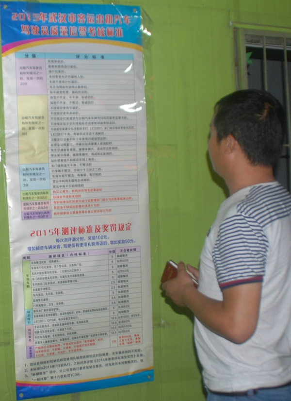 为认真贯彻新版《武汉市客运出租汽车服务质量信誉考核暂行办法》,进一步提高公司管理水平,提升驾驶员文明服务质量,公司政工部特作一批《武汉市客运出租汽车服务质量信誉考核暂行办法》、《2015年测评标准及奖罚规定》宣传展板。 8月12日,营运督导部配合政治工作部将宣传展板送至大通公司公共刷卡点、保养点等处张贴,方便驾驶员在进行刷卡、保养时观看学习。
